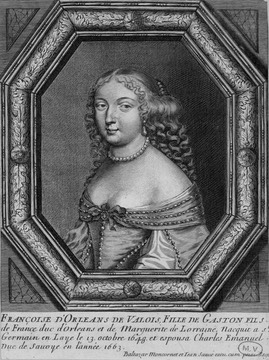 According to her Wikipedia article, she was docile and herded into a dynastic marriage while still 14, "Orléans married the Duke of Savoy by proxy at the Palais du Louvre on 4 March 1663. The couple met for the first time at Annecy on 3 April 1663 where they were married officially." She died not long after while still 15, the shortest duration for a Savoian consort.