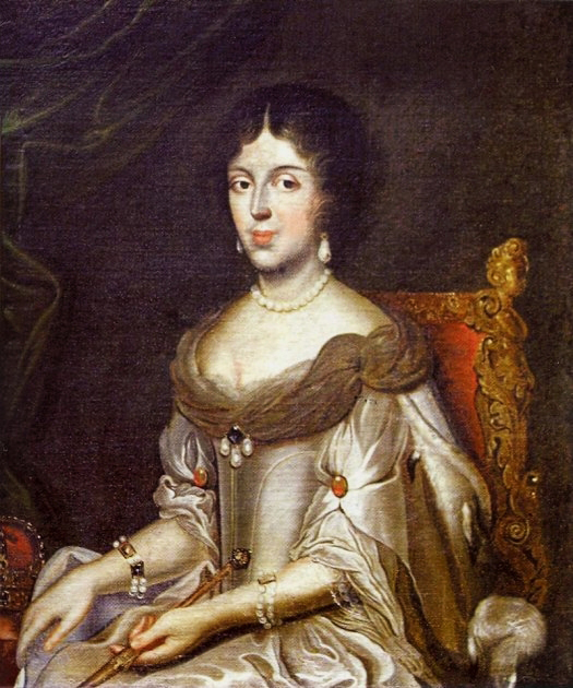 Her Wikipedia article includes this, "She came to Poland at the age of five years as a lady in waiting to Marie Louise Gonzaga, the French-born Queen of Poland from 1645 to 1672, wife and consort to two Polish kings — Władysław IV Vasa and later his brother (who succeeded him) John II Casimir Vasa. At the court she met John Sobieski, who arrived there in 1656, but she was first married to Jan "Sobiepan" Zamoyski in 1658, with whom she had three daughters, all died in infancy. Zamoyski died in 1665 and the widowed Marie Casimire eventually married Sobieski on the 14 July the same year. The couple had fourteen children together, but only four of them survived until adult age — Jakub, Aleksander, Konstanty and Teresa (who later became Kurfürstin of Bavaria and mother to Emperor Karl VII).