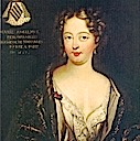 She was one of the Sun King's numerous mistresses. She was involved in an accident that forced her to create a lace and ribbon headdress. This was the first Fontanges headdress, described in her Wikipedia article. The Fontanges headdress, seen frequently in the next Album, was the hallmark of feminine dress of the late Louis XIV era.