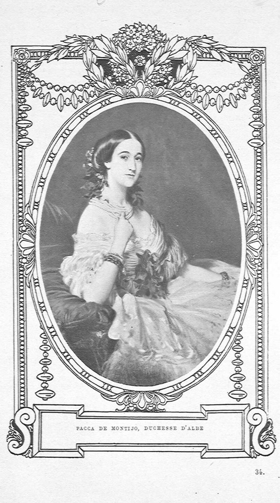 Paca was Eugenia de Montijo's older sister who married Jacobo Luis FitzJames Stuart Ventimiglia Álvarez de Toledo Beaumont y Navarra, to become Duchess of Alba, the most important noblewoman of Spain. Her brief Wikipedia article is here. Please note "Stuart" is among the names in the Duke of Alba's ancestry.