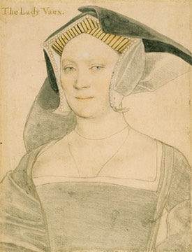 Keywords: 1536, Holbein - Hans the Younger, Elizabeth Cheney, Elizabeth Vaux, Lady Vaux, English, English hood, jeweled headdress, square neckline, long sleeves, necklace