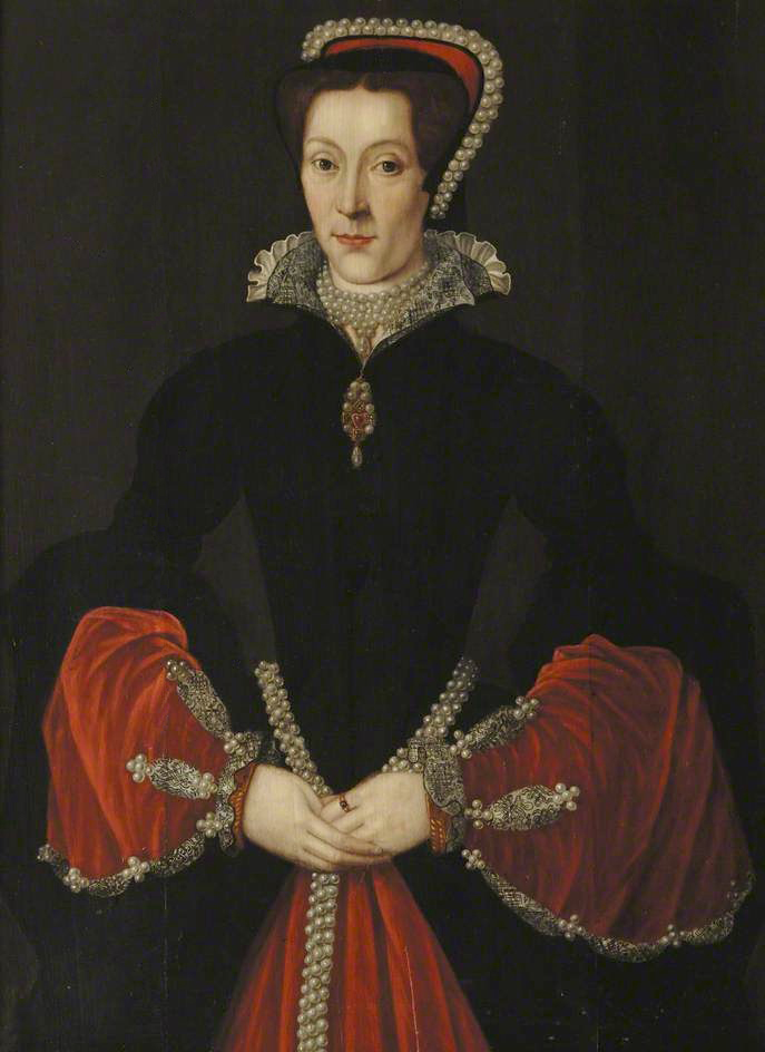 Lady Elizabeth wears a severe black dress made brilliantly alive by red under-sleeves and numerous pearls. How much artistic license the 1612 portraitist took is unknown.